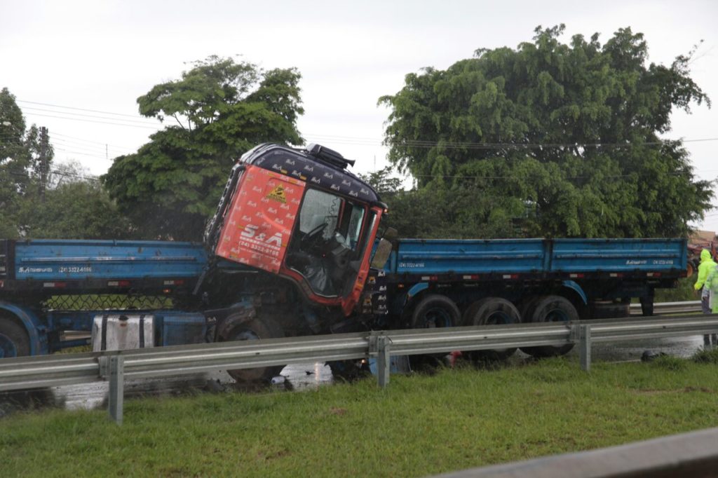 Com a chuva forte das últimas horas uma carreta fez o famoso “L” na pista interior da Washington Luís na tarde desta quarta, 14, em São Carlos. O acidente ocorreu em frente o trevo do Tangará perto de uma caixa de água do Saae. Esse local é sempre palco de problemas, pois é uma curva onde existia um radar, que especialistas em trânsito disseram que estava mal localizado.