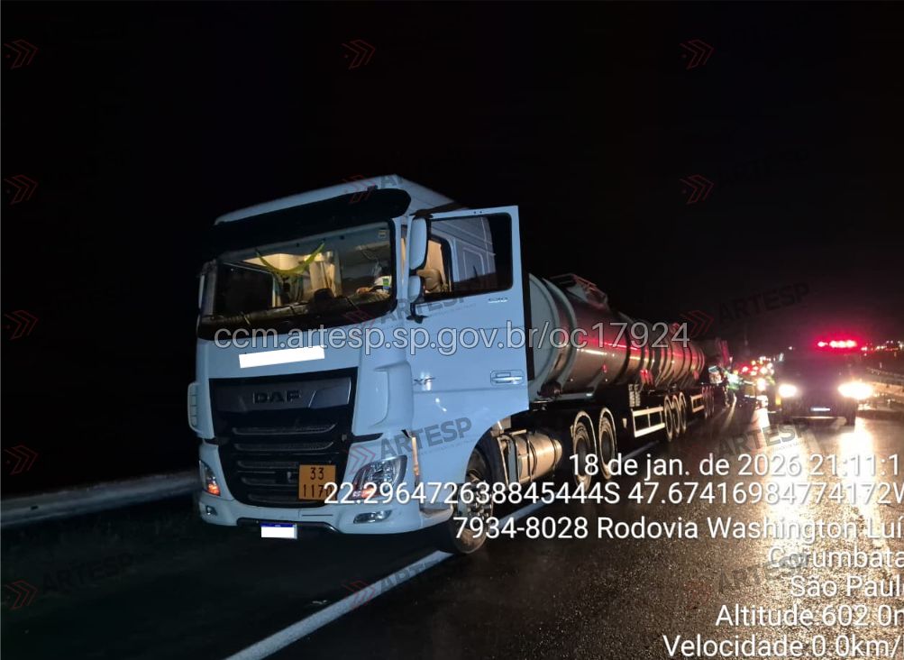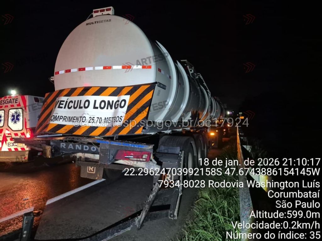 Um grave acidente registrado na noite de domingo (18) na Rodovia Washington Luís (SP-310), em Corumbataí, deixou um motorista preso às ferragens após uma colisão traseira entre uma carreta e um caminhão.