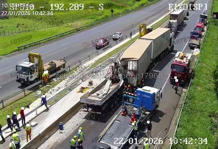 A colisão aconteceu na altura do km 192 e envolveu cinco veículos, sendo três caminhões e dois carros de passeio. As primeiras informações apontam para um engavetamento, mas a dinâmica exata do acidente ainda está sendo investigada pelas autoridades.