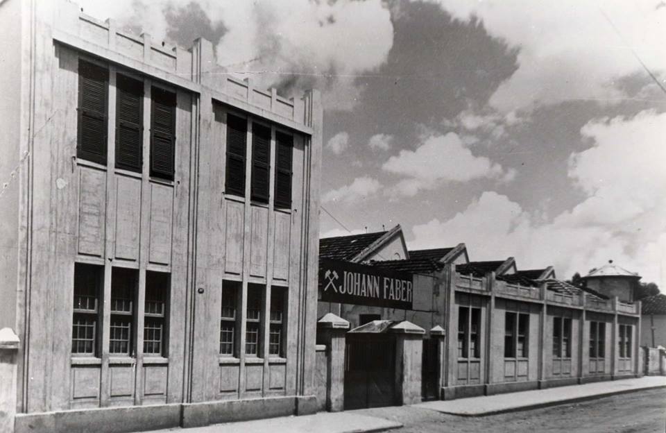 Imagens: Prédio da fábrica Lápis Johann Faber, c.1940; Fritz Johansen, diretor da Fábrica de Lápis Johann Faber, c.1940; vista aérea da fabrica Johann Faber, c.1950; e funcionarios da fábrica de lápis Johann Faber, c.1980. Acervo APH-FPMSC