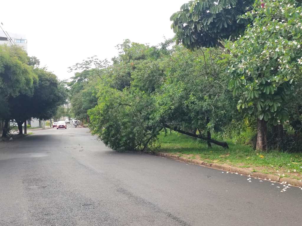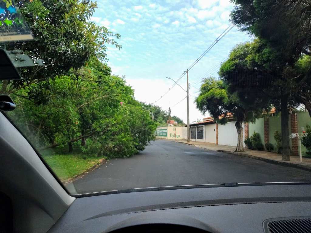 O galho entrou na faixa de rolamento, assim o perigo de um acidente acontecer é grande, especialmente no período noturno, quando a iluminação é precária.
