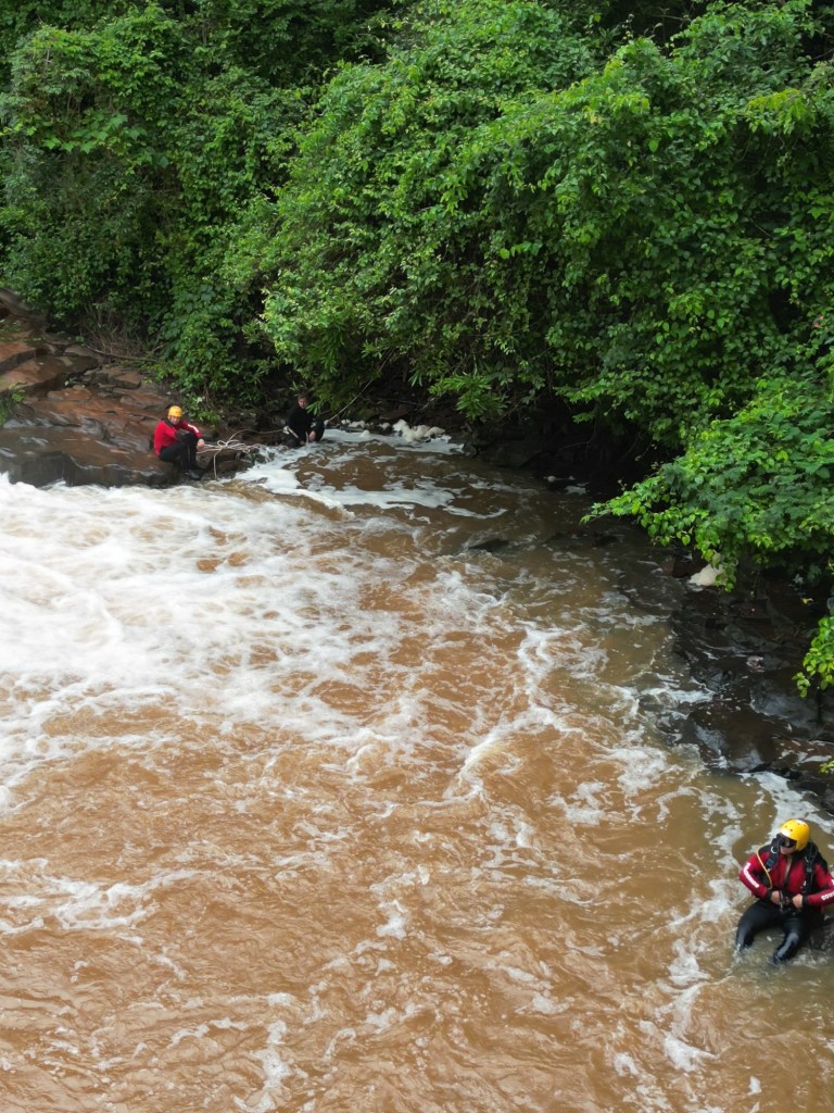 As equipes enfrentam dificuldades devido às condições climáticas adversas na região. As chuvas recentes aumentaram a intensidade da correnteza da cachoeira, tornando a operação de resgate ainda mais desafiadora.