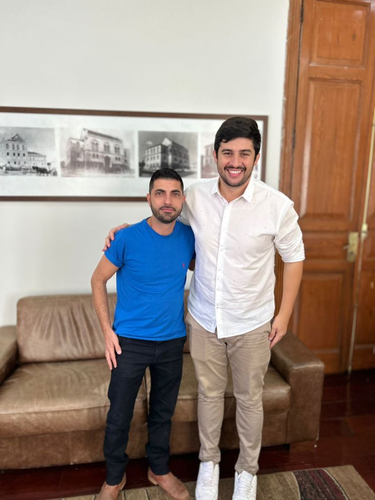 O presidente interino da Câmara Municipal de São Carlos, vereador Bruno Zancheta (Republicanos) recebeu na manhã desta quinta-feira (5), a visita do vereador Jhow do Espetinho (MDB), do município vizinho de Descalvado. O encontro teve como objetivo promover um intercâmbio entre os Legislativos das duas cidades, com foco em boas práticas, modernização dos processos e fortalecimento da integração regional.