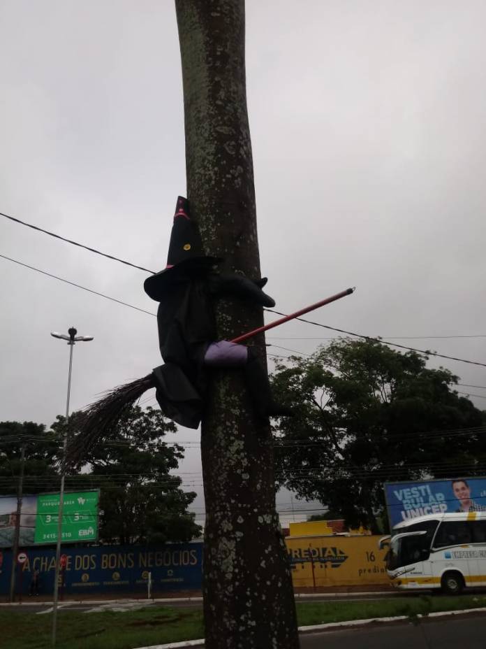 Na sexta, 6, uma situação inusitada aconteceu na rotatória que fica perto da base do Samu na avenida Professor Luiz Augusto de Oliveira. Uma bruxa, isso mesmo, uma bruxa com vassoura e tudo “deu de cara” com uma árvore que está na rotatória e a cena chamou a atenção de todos.