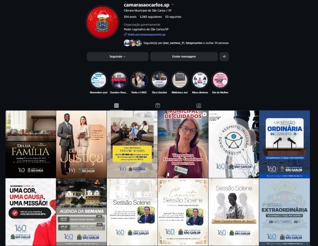 A Câmara Municipal de São Carlos informa que sua conta oficial no Instagram foi invadida por terceiros na data de hoje, 08/12/2025. Pedimos que toda e qualquer mensagem, publicação ou conteúdo divulgado neste período seja desconsiderado, pois não representa a instituição.