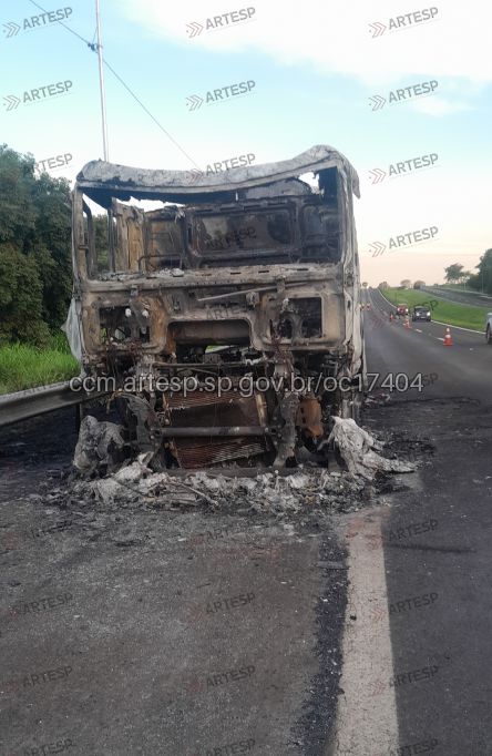 Um caminhão foi destruído por um incêndio no dia de ontem, 30, no km 362,5, da Washington Luís, sentido norte, em Santa Adélia. Apesar do susto, ninguém se feriu.