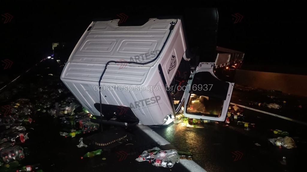 Uma carreta carregada com refrigerantes acabou tombando no om 193, sentido sul, da rodovia Washington Luís em Corumbataí. O acidente aconteceu por volta das 0h50 da madrugada desta quarta, 22. Apesar do susto e das grandes avarias na rodovia e no veículo, o condutor não se feriu.