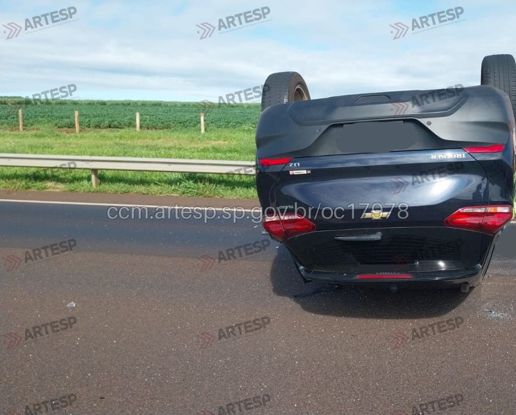 Um carro modelo GM Tracker capotou na manhã desta sexta-feira (23), no km 26, sentido sul, da Rodovia Antônio Machado Sant’Anna (SP-255), em Luiz Antônio.