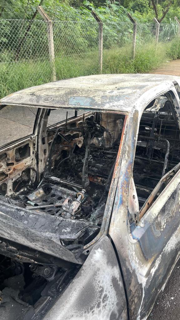 Um detalhe curioso chamou a atenção: mesmo com a intensidade do fogo, a placa dianteira do carro não foi atingida pelas chamas.
