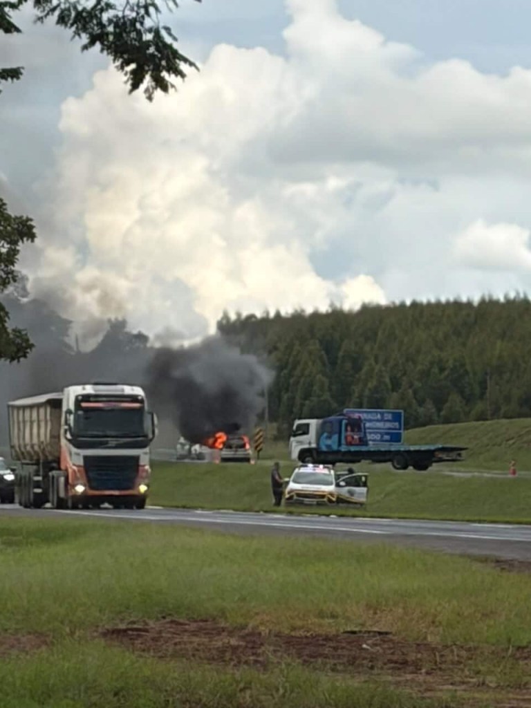 Um carro pegou fogo na tarde desta quinta-feira (2) no km 204 da Rodovia Washington Luís, no sentido sul, na altura do município de Itirapina.