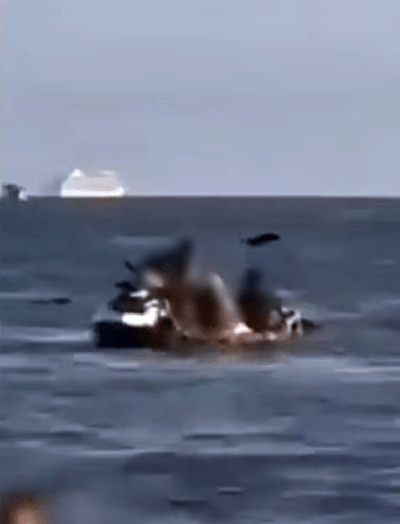 As imagens mostram os criminosos abordando as vítimas sobre os caiaques, recolhendo objetos pessoais e, na sequência, se afastando com os remos. Pouco depois, os assaltantes abandonam os equipamentos no mar e fogem em alta velocidade com a moto aquática.