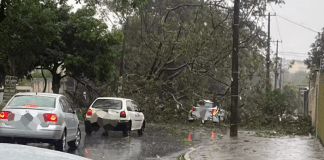 Temporal: árvore despenca sobre carro e deixa passageiros presos