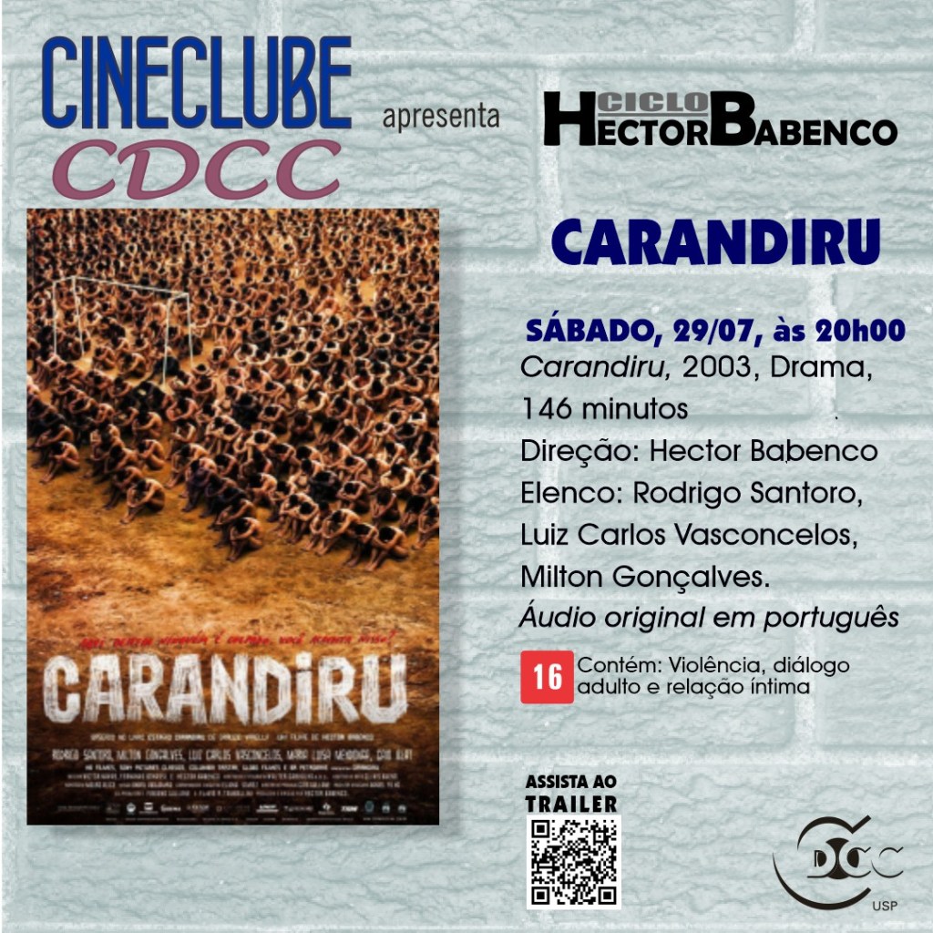 Neste sábado, 29 de julho, encerra-se o ciclo com a exibição do filme Carandiruno auditório do prédio do CDCC, localizado na Rua Nove de Julho, 1227. A entrada é franca.