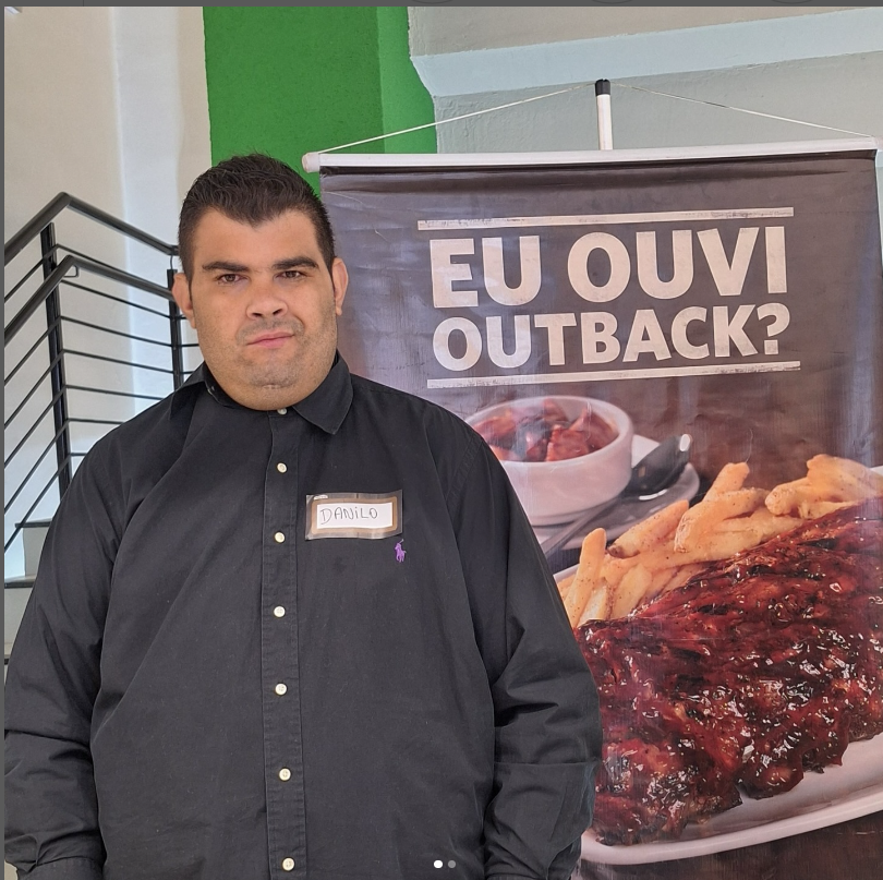 Danilo da Apae São Carlos está trabalhando no Outback Steakhouse que faz parte das empresas que apoiam a contratação de PcD . 🎉 Hoje celebramos os 33 anos da Lei de Cotas para pessoas com deficiência (Lei nº 8.213/1991)!