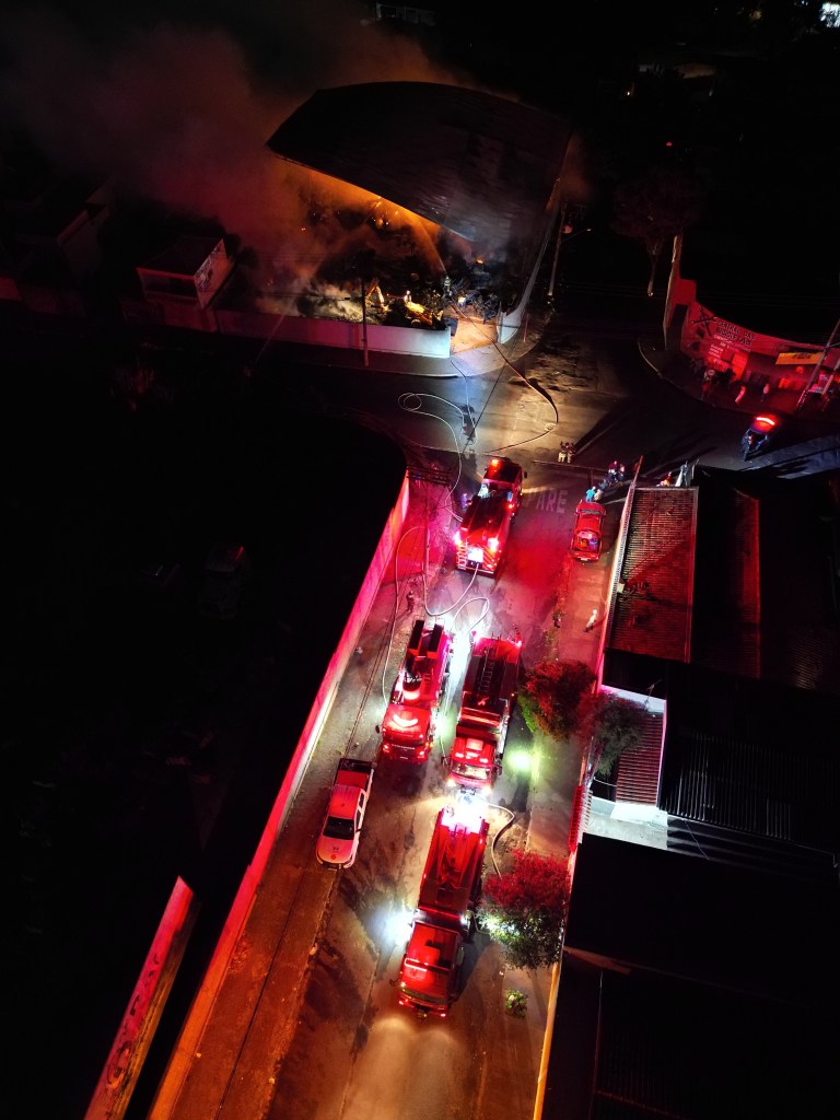 O profissional Drone Mavic Le Petit passou pelo local do incêndio com seu drone e captou imagens noturnas do que aconteceu.