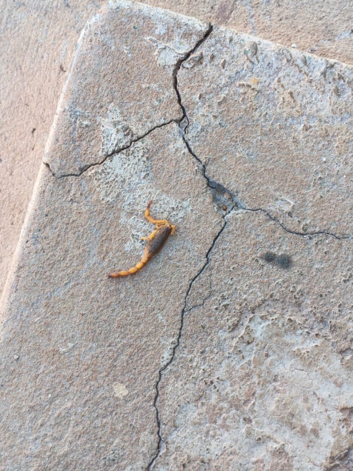 Uma moradora da Rua São Pio X, na esquina com a Quintino Bocaiúva, na Vila Prado, em São Carlos, levou um susto neste fim de semana ao encontrar um escorpião amarelo na calçada de sua casa. Preocupada, ela contou que tem uma filha de apenas 4 anos e teme pela segurança da criança e dos vizinhos.
