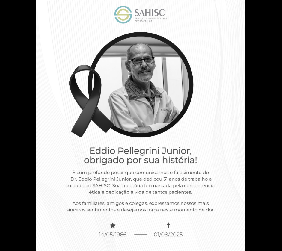 Com pesar, comunicamos o falecimento do Dr. Eddio Pellegrini Junior, que dedicou 31 anos de sua vida ao SAHISC.