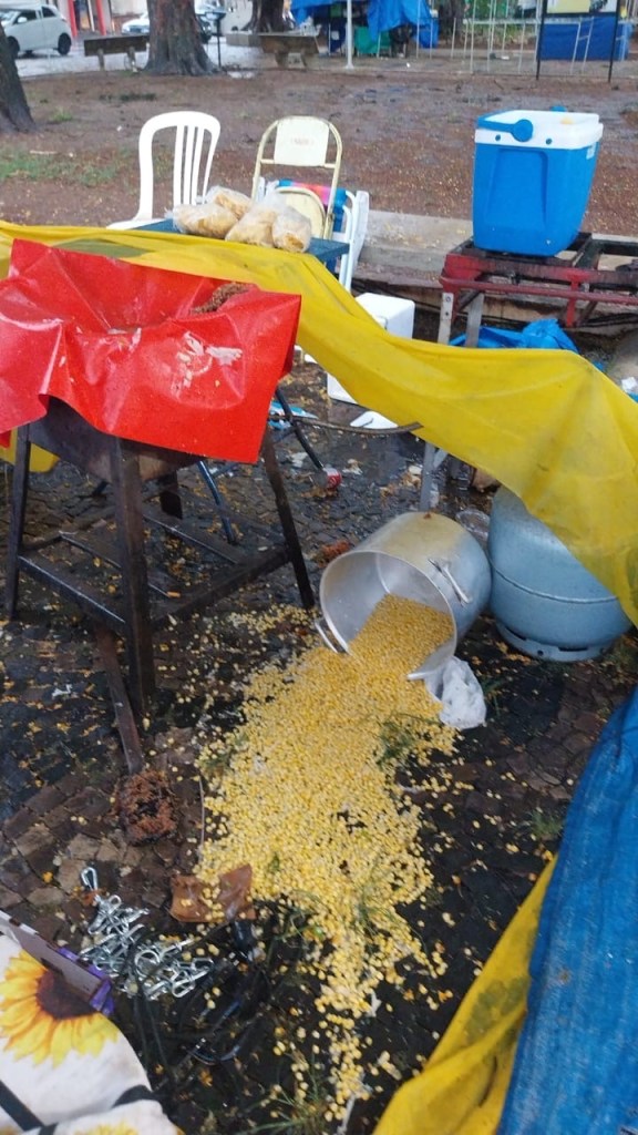 As fortes chuvas que atingiram São Carlos neste sábado (18) trouxeram não apenas transtornos à cidade, mas também prejuízos significativos aos comerciantes que participavam da tradicional Festa do Milho, na Praça dos XV. A queda de tendas e barracas, conforme informou a Secretaria Municipal de Cultura e Turismo, comprometeu a estrutura do evento e obrigou o cancelamento das atividades do dia — um golpe duro para quem depende desse tipo de ocasião para complementar a renda e manter o sustento da família.