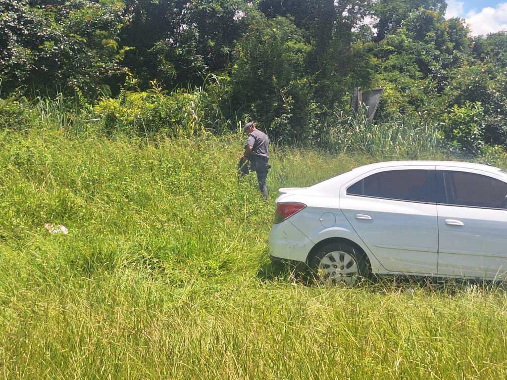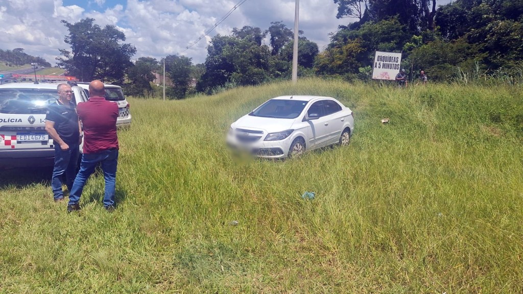 Ao perceberem a aproximação da polícia, os ocupantes abandonaram o carro e fugiram para uma área de mata próxima ao entroncamento das rodovias. Segundo a PM, parte do grupo conseguiu escapar, mas um dos suspeitos teria reagido à abordagem e atirado contra os policiais.