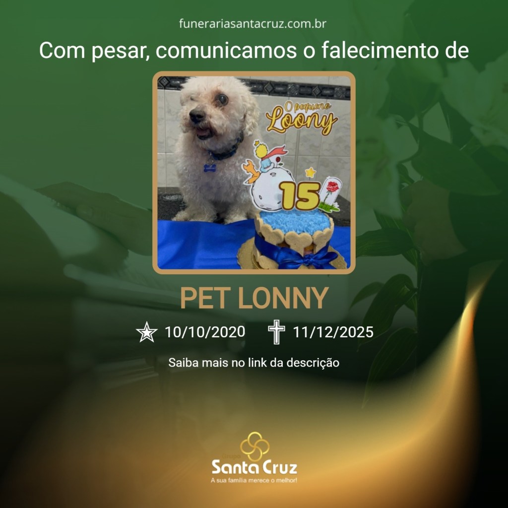 Com pesar, o Grupo Santa Cruz comunica o falecimento do pet Lonny, ocorrido no dia 11/12/2025, na cidade de São Carlos, aos 15 anos de idade.