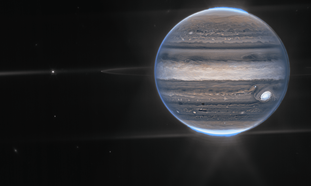 As imagens de Júpiter vêm da Near Infrared Camera (NIRCam) do observatório, que possui três filtros infravermelhos. Como os dados capturados pelo Webb são invisíveis aos olhos humanos, eles precisam ser processados para o espectro visível. Assim, foi possível registrar até mesmo os tênues anéis do planeta gasoso. De acordo com a Nasa, ‘’um milhão de vezes mais fracos que o planeta’’.