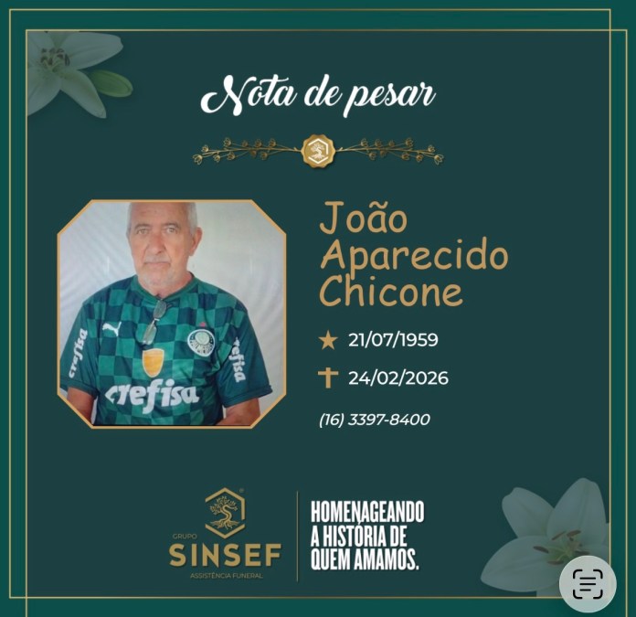 A família de João Aparecido Chicone comunica, com profundo pesar, o seu falecimento.