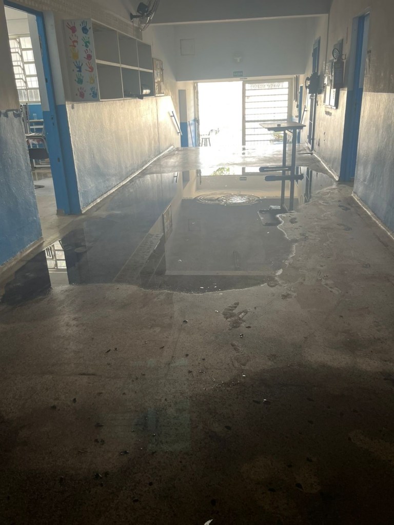 Com a chuva, por conta da obra do telhado que demorou para iniciar, salas e corredores da escola ficaram alagados, danificando brinquedos e materiais. “Os cerca de 140 alunos estão há três semanas alojados no Clube da Electrolux, que, gentilmente, cedeu para a escola, mas não é um lugar adequado para receber crianças e muito menos realizar as aulas. Nesse tempo, somente atividades lúdicas estão sendo oferecidas, sem conteúdo pedagógico pela falta de estrutura”.