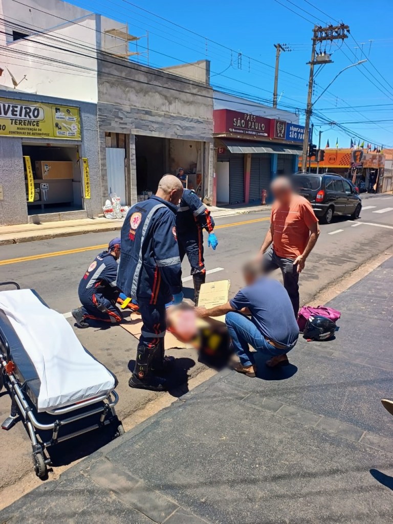 Uma motociclista ficou ferida no final da manhã desta quarta-feira (26) após sofrer uma queda na rua Raimundo Corrêa, quase na esquina com a rua São Paulo, sentido avenida São Carlos, na região central da cidade.