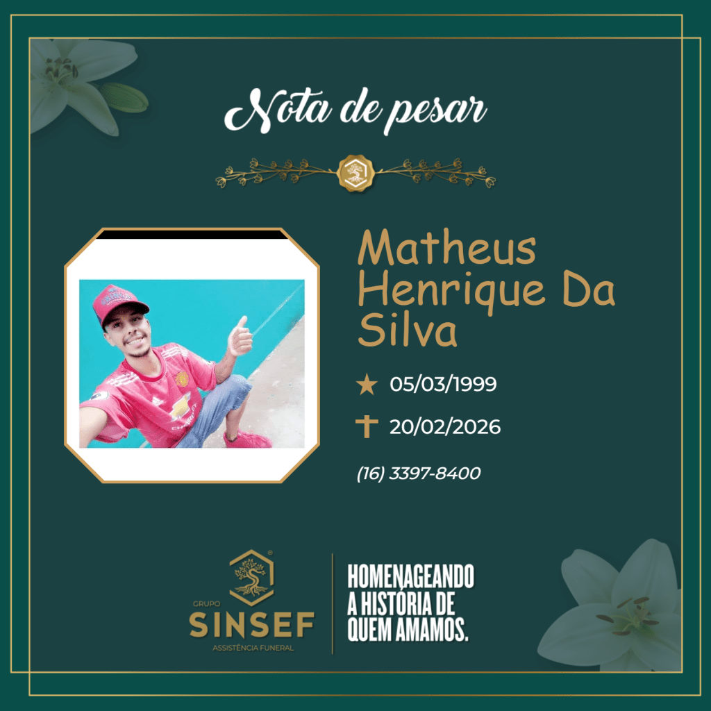 A família de Matheus Henrique da Silva comunica, com profundo pesar, o seu falecimento.