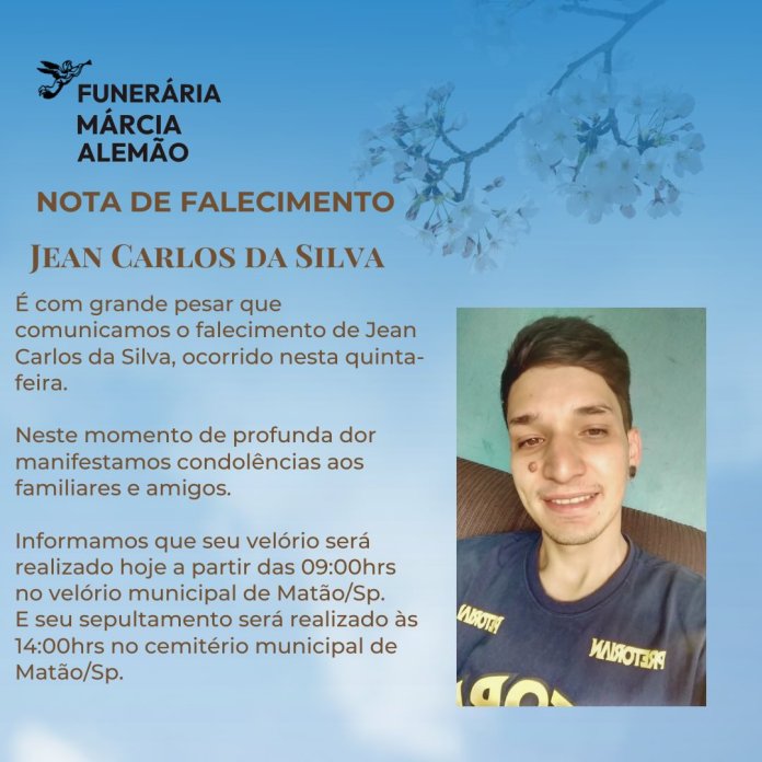 Faleceu com 29 anos de idade Jean Carlos da Silva.