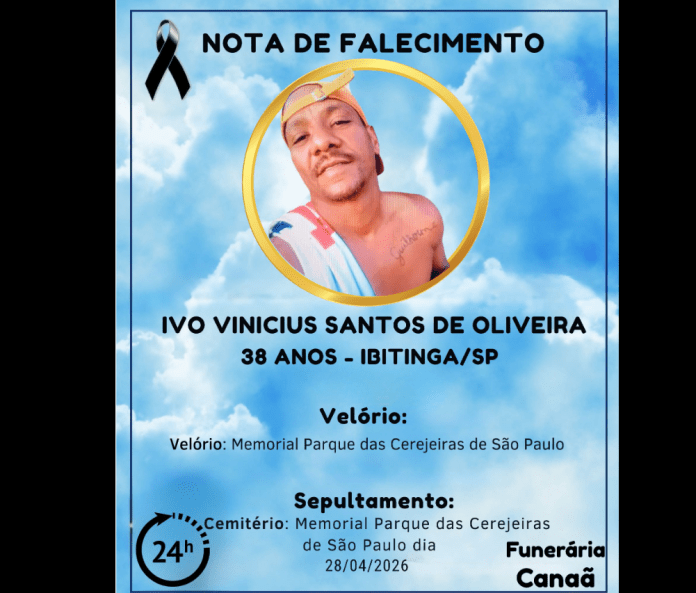A Funerária Canaã Ibitinga comunica, com enorme pesar e respeito, o falecimento do Sr. Ivo Vinicius Santos de Oliveira, aos 38 anos, ocorrido em Ibitinga/SP.
