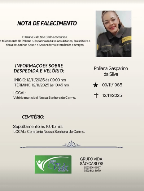 Notícias O falecimento, aos 40 anos, de Poliana Gasparino da Silva Por renatochimirri - 12 de novembro de 2025 Share Facebook Twitter Pinterest WhatsApp