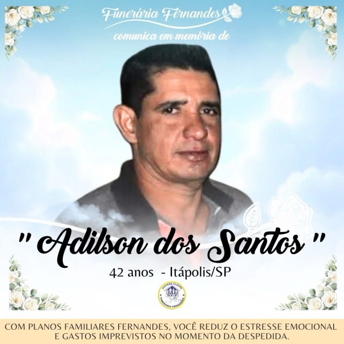 É com grande pesar que a Funerária Fernandes comunica o falecimento do Sr. Adilson dos Santos, carinhosamente conhecido como “Lico”, aos 42 anos, ocorrido no dia 25 de abril de 2026, na cidade de Itápolis (SP).