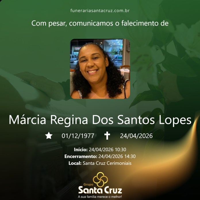 É com grande pesar que o Grupo Santa Cruz informa o falecimento da Sra. Marcia Regina dos Santos Lopes, aos 48 anos, ocorrido no dia 24/04/2026, na cidade de São Carlos.