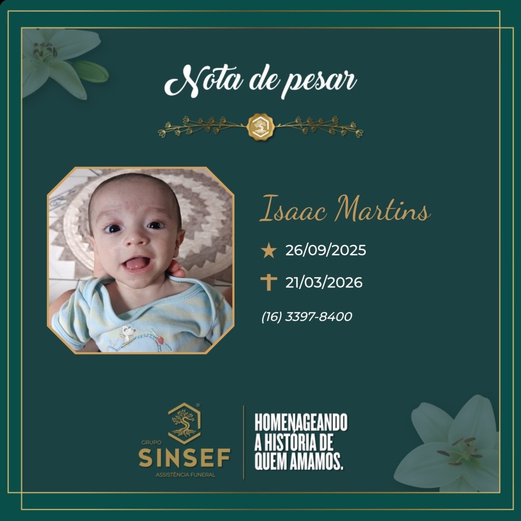 O Grupo SINSEF terá a honra de realizar sua última homenagem no dia 22/03/2026, no Memorial SINSEF – Américo Brasiliense, com início às 14h e encerramento às 16h15. Após a cerimônia, o cortejo seguirá para o Cemitério Municipal de Américo Brasiliense, onde ocorrerá o sepultamento às 16h30.
