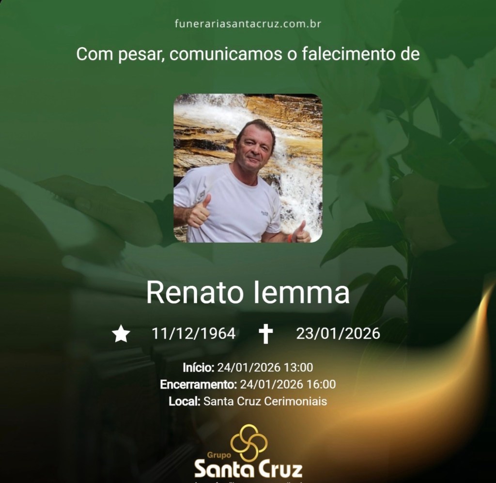 É com grande pesar que o Grupo Santa Cruz informa o falecimento do Sr. Renato Iemma, aos 61 anos de idade, ocorrido no dia 23 de janeiro de 2026, na cidade de São Carlos.