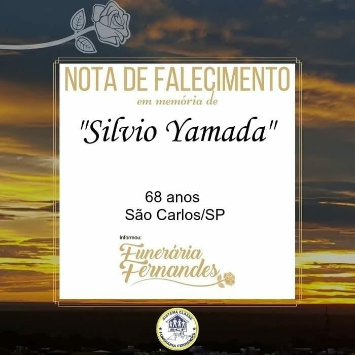 É com profundo pesar que a Funerária Fernandes comunica o falecimento do Sr. Silvio Yamada, aos 68 anos, ocorrido em 03 de dezembro de 2025, na cidade de São Carlos (SP).