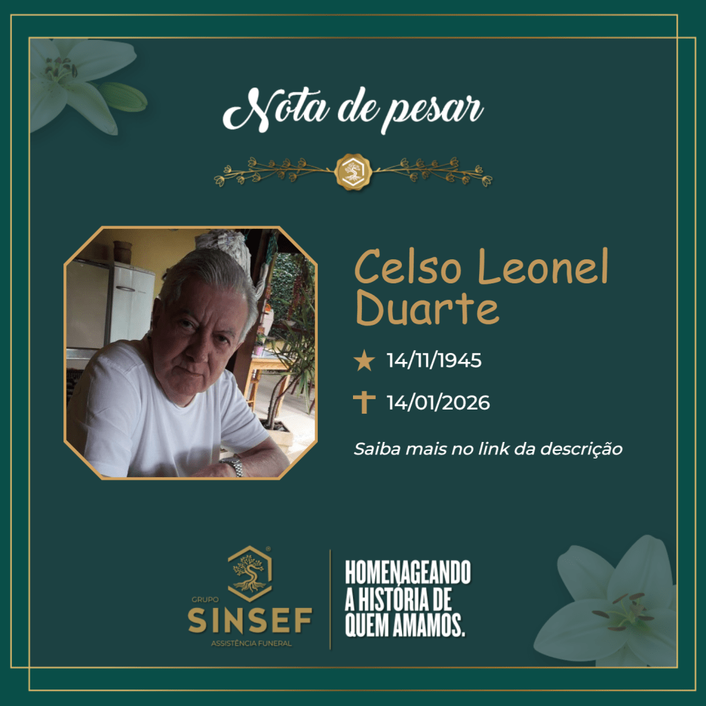 O Grupo SINSEF terá a honra de prestar a última homenagem no dia 15/01/2026, no Memorial SINSEF – São Carlos, com início às 10h15 e encerramento às 14h15.