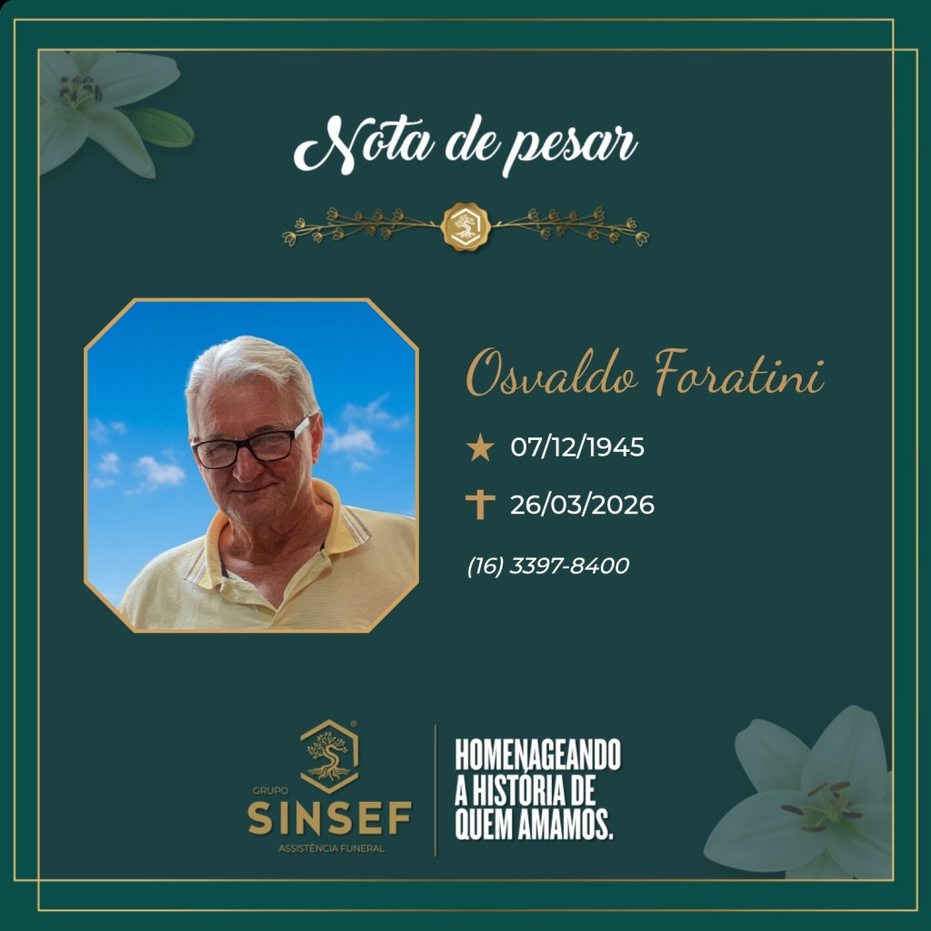 O Grupo SINSEF terá a honra de prestar a última homenagem no dia 27/03/2026, no Memorial SINSEF – Américo Brasiliense, com início às 10h30 e encerramento às 13h00. Após a cerimônia, o cortejo seguirá para o Cemitério Municipal de Américo Brasiliense, onde o sepultamento ocorrerá às 13h30.