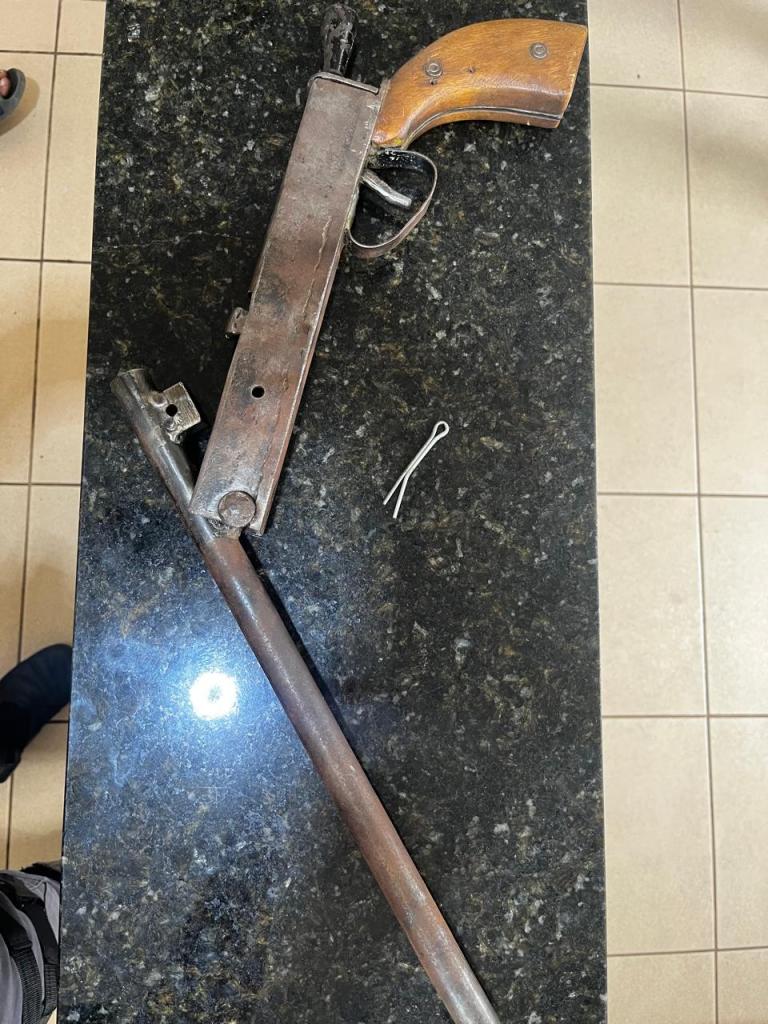 Ainda no local, os policiais apreenderam duas armas de fogo, reforçando a gravidade da ocorrência.