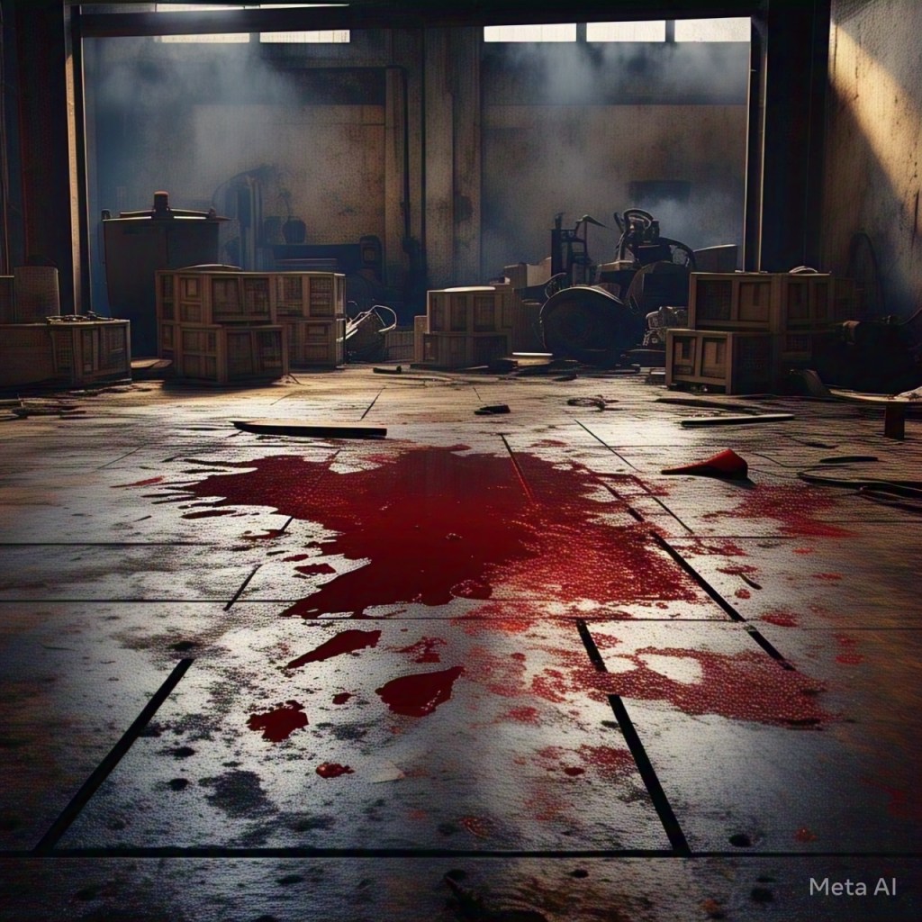Vestia um macacão laranja berrante, que contrastava com o tom lívido da pele. Seus olhos semicerrados pareciam mirar um ponto além do tempo. A boca estava selada com esparadrapo cinza, e ao redor da cadeira, uma poça de sangue que se alastrava como um lago de silêncio. O rosto — desidratado, mumificado pela sede ou pelo medo — contava uma história de martírio em silêncio.
