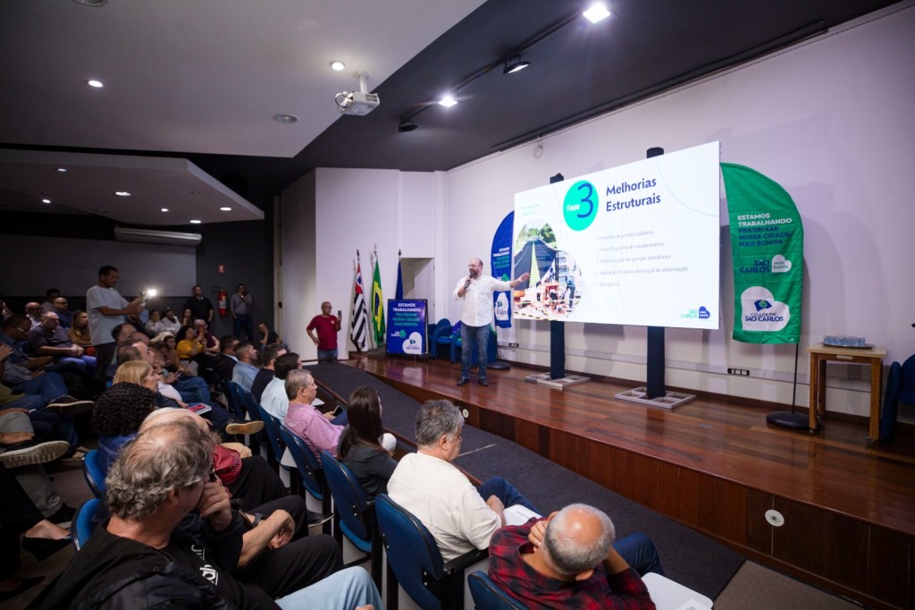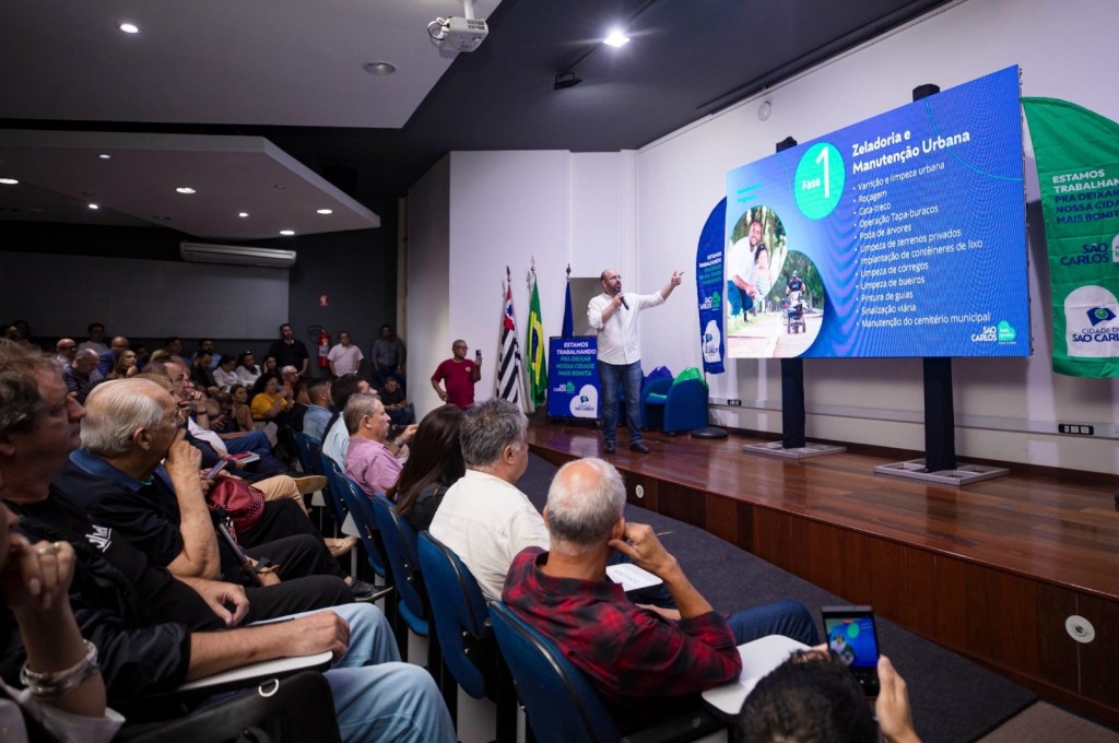 O prefeito de São Carlos, Netto Donato, anunciou, nesta quarta-feira (11/03), o início do Programa São Carlos Mais Bonita, uma iniciativa que une planejamento financeiro, zeladoria urbana e participação popular para transformar a cidade. O projeto, estruturado desde 2025, começa a ser executado em 2026 com previsão de milhares de operações e investimentos contínuos em limpeza, manutenção e revitalização. O assessor do prefeito Netto Donato, João Muller, explicou que o programa foi dividido em três fases e terá atuação regionalizada. “A primeira fase já começou e vai durar o tempo todo do governo. Depois entraremos com a segunda fase, que vai integrar a melhoria da iluminação pública, a recuperação das praças e parques. A terceira fase será o ápice: recapeamento, paisagismo e modernização dos espaços urbanos. A parte do centro estendido terá uma equipe permanente, e nós teremos de duas a três equipes volantes. Quando você sair do bairro, o sentimento do cidadão vai ser que o Estado esteve lá e executou a limpeza e a zeladoria”.