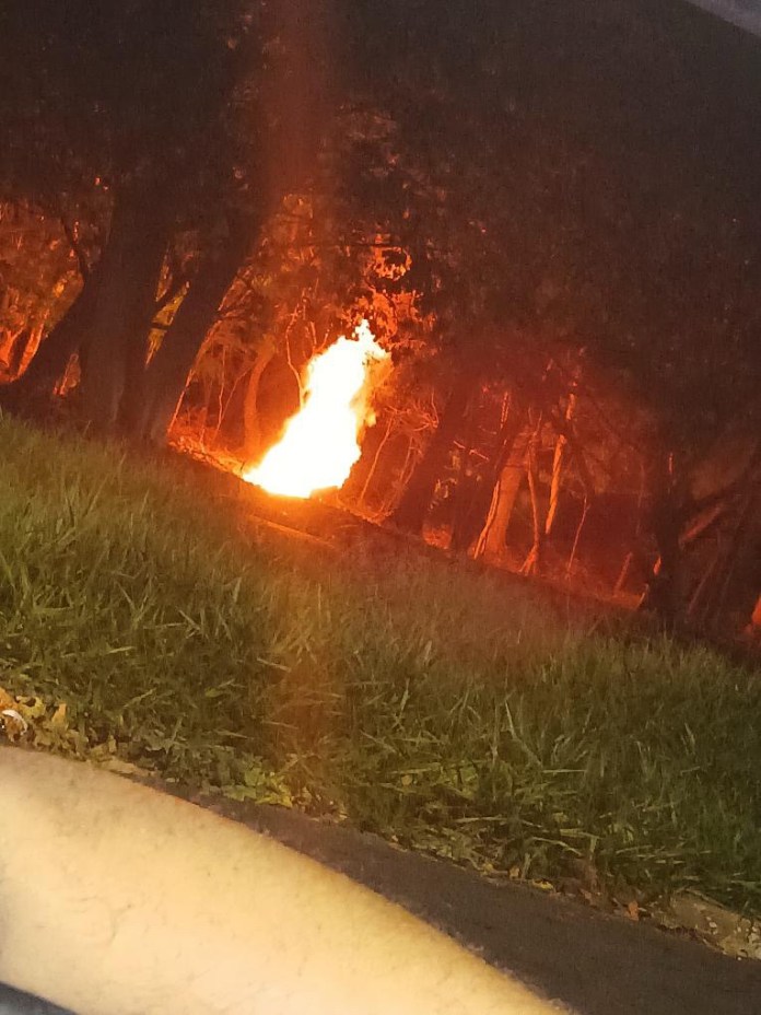 Na noite desta terça-feira, 26, um sofá estava sendo consumido pelo fogo no meio da rotatória da Educativa na Marginal.