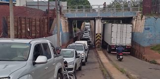 Na manhã desta quinta, 28, foi preciso realizar um desvio para garantir a segurança das obras de duplicação do viaduto da Praça...