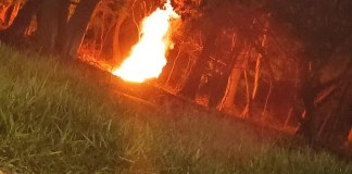 Na noite desta terça-feira, 26, um sofá estava sendo consumido pelo fogo no meio da rotatória da Educativa na Marginal.