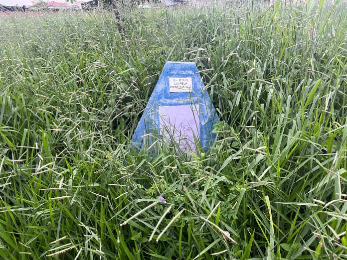 O totem do Caminho da Fé, localizado na Avenida Comendador Alfredo Maffei, ao lado do Kombis Bar, está em condições preocupantes. Completamente afundado e cercado por mato alto, o marco, que simboliza a participação de São Carlos nessa importante rota de peregrinação, reflete o descaso com a manutenção das áreas públicas da cidade.