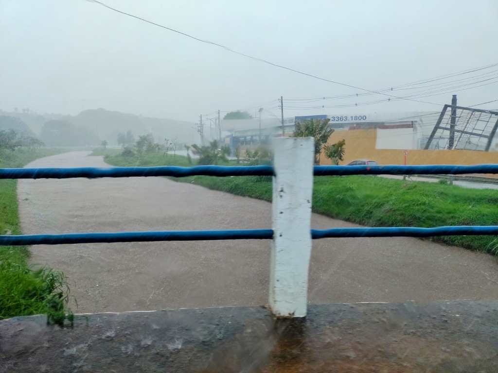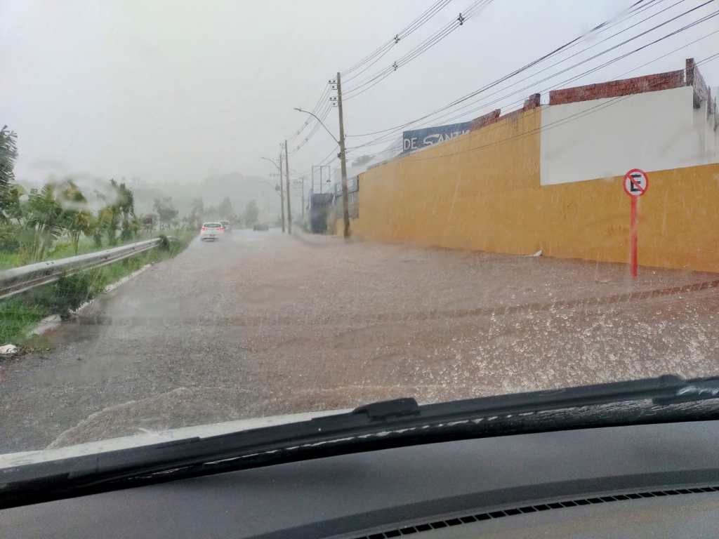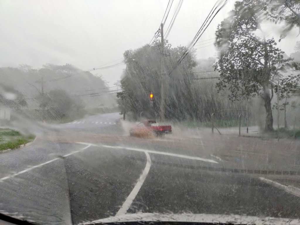O motorista que estiver nas imediações não deve passar por estes locais, pois a chuva é muito forte.
