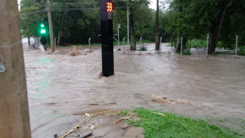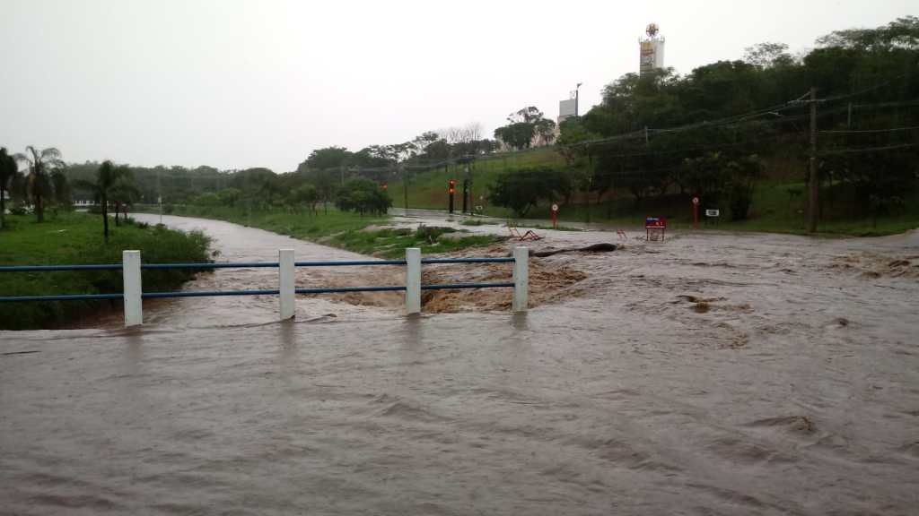 A água vem descendo da Santa Felícia continua inundando parte da Rotatória do Cristo na região do shopping na tarde desta quarta, 27. A forte chuva fez com que os córregos transbordassem, tanto o Mineirinho, como o Monjolinho e o Gregório.